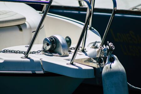 Limassol Cyprus May 14, 2020 Closeup of a boat moored in the marina of Limassol in Cyprus island