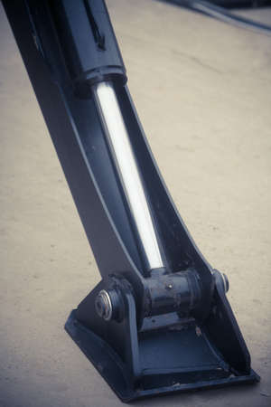 Hydraulic mechanism on modern machine. Industrial detail piston in machinery. Technology.