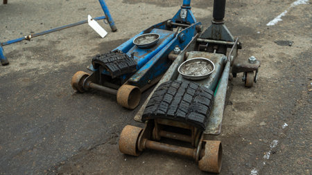 Discover vintage pneumatic jacks at a tire change service, showcasing the evolution of automotive tools. These classic devices highlight the craftsmanship and reliability of past innovations.