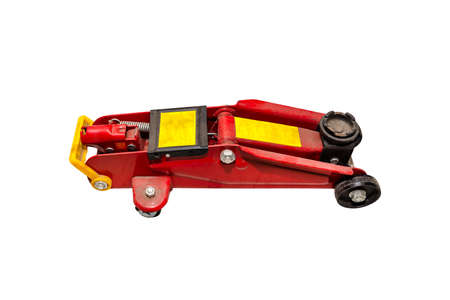 Hydraulic floor jack for truck and car changing wheel isolated on white background with clipping path