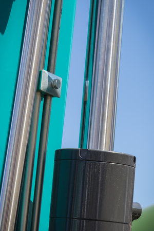 Heavy hydraulic machine detail close up. Generic construction machine detail.