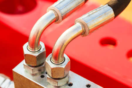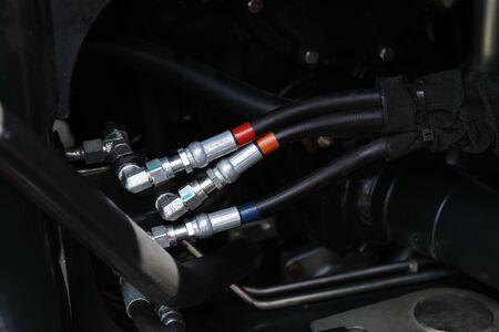 Hydraulic connections hoses of a machinery industrial detail