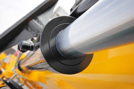 A closeup shot of a machine hydraulic system cylinder