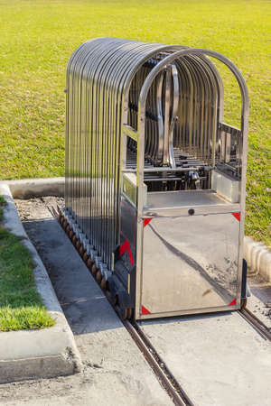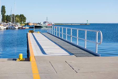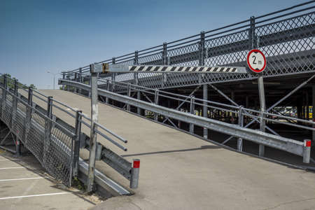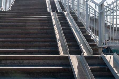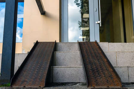 Accessible ramp for disabled people, metal ramp with handrails for strollers and disabled people, architectural accessibility of public buildings