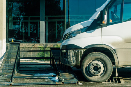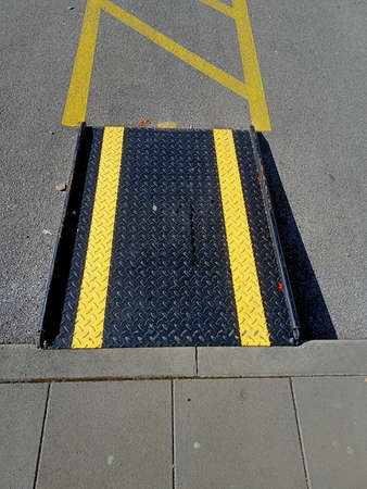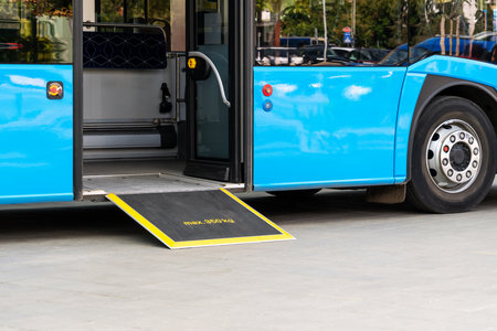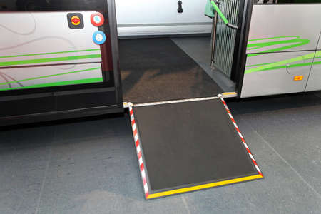 Accessibility in public transport. Bus ramp low floor. Accessible environment.