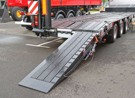 Heavy Equipment Transport Flat Bed Trailer With Loading Ramp