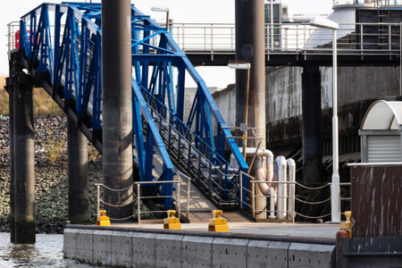 Ships moored in port in Poland. Urban landscape with ships in port.