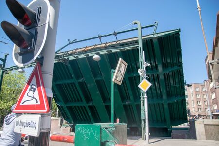 AMSTERDAM, NETHERLANDS - JUNE 03, 2017: Bridge opens on an Amsterdam canal