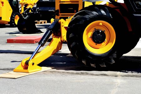 Hydraulic cylinder of the lifting system on a car crane.The control system of the crane engine.Lifting the hydraulic compartment on a truck crane