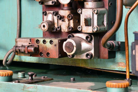 Hydraulics oil station on the machine tool on industrial equipment. Lubrication system with oil under pressure.