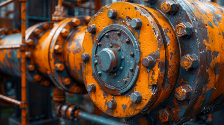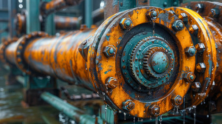 A closeup of the intricate pipes and valves that make up a submersible pump crucial for the extraction of oil