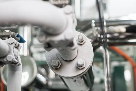 Industrial equipment in a power plant with pipes and valves. Power plant. Industrial background.