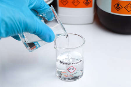 potassium hydroxide in glass, chemical in the laboratory and industry