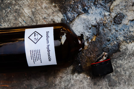 Sodium hydroxide in bottle, chemical in the laboratory and industry