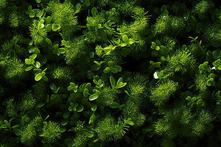 A captivating close-up of vibrant green flora adorned with glistening water droplets, showcasing the delicate beauty of nature in a tranquil environment.