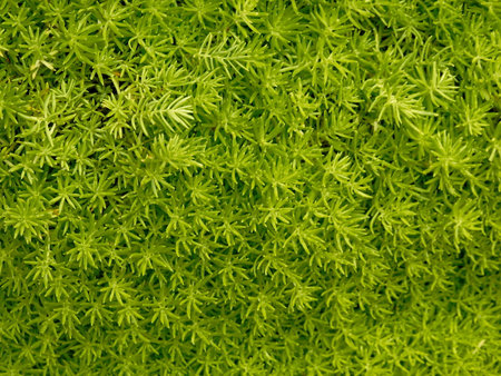 Green moss background. Close-up of green moss texture. Top view.
