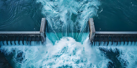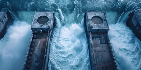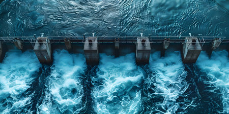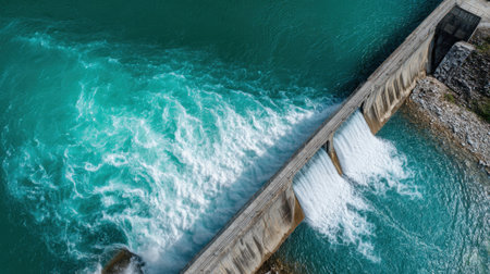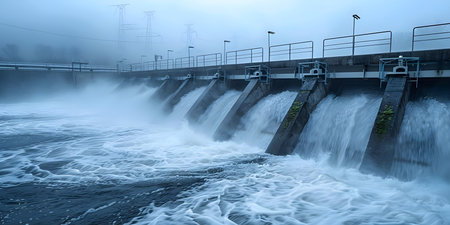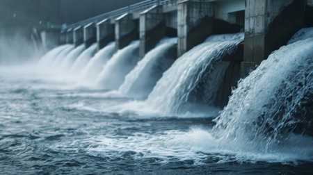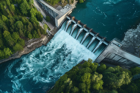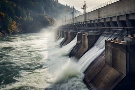 Hydroelectric Power Generation: A dam with rushing water, highlighting the production of clean energy through hydroelectric power generation.