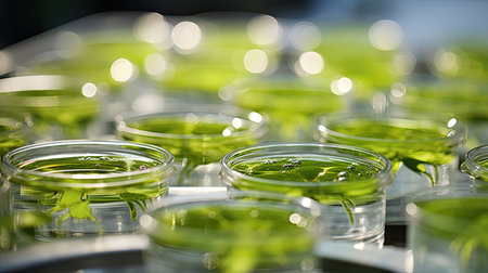 Algae, microalgae research in laboratories. biotechnology, science. Biofuel research process in laboratory. Generative AI