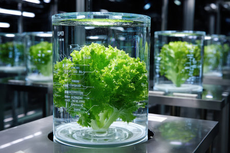 Lettuce thrives in transparent containers showcasing innovative hydroponic techniques and technology.