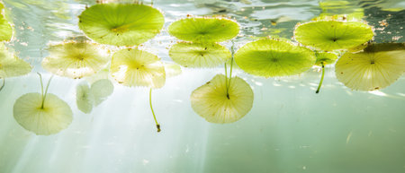 floral aquatic plant concept of lily leaves in water surface