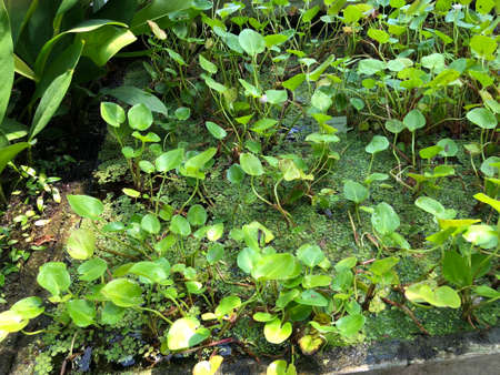 Green Ludwigia has green leaves that will grow up out of the water surface and form a carpet of pretty foliage. Nature garden with exotic evergreen plants