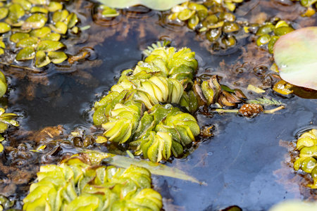 duckweed plant on water, covered with green lemna pond, marsh lemna Araceae