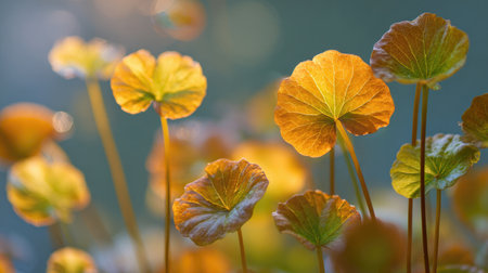 The Gotu kola in fall, warm amber light, crisp air, shallow depth of field, soft natural bokeh, true-to-life color, minimal styling