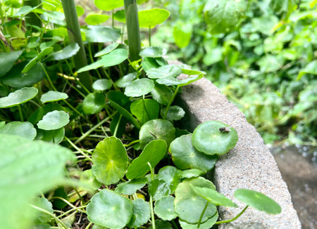 Fresh centella asiatica leaves. Gotu kola herb plant