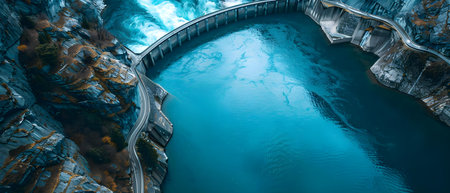 Generating Sustainable Energy: Aerial View of a Hydroelectric Dam. Concept Renewable Energy Sources, Environmental Conservation, Hydroelectric Power, Aerial Photography, Sustainable Infrastructure