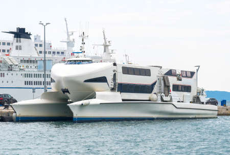 Modern high speed craft moored in the port.