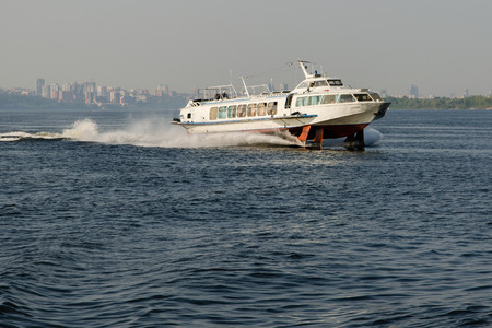 TUTAYEV, RUSSIA - JULY 10, 2016: The hydrofoil Meteor-218 on the Volga river on a summer day