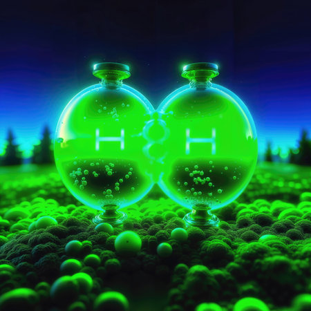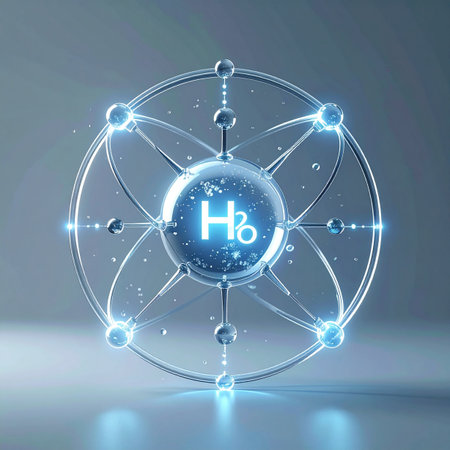 A luminous H2 molecule glows at the center of an intricate atomic structure, symbolizing a breakthrough in clean, sustainable energy.
