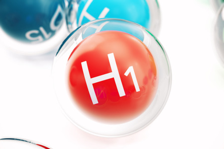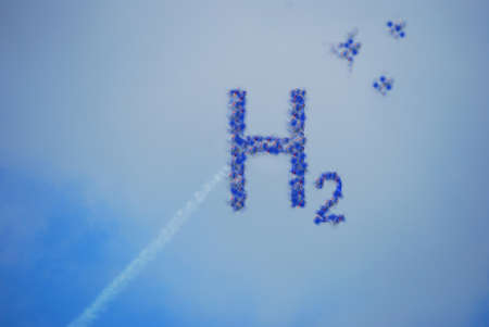 hydrogen h2 letters in a blue fluid with many circles from oil
