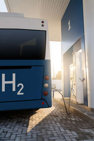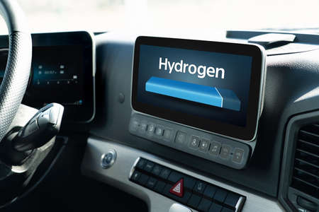 hydrogen on gas stations fuel dispenser. h2 combustion engine for emission free eco friendly transport.