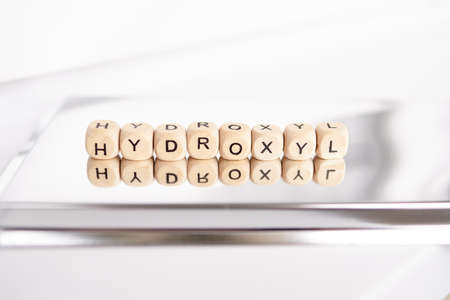 Word hydroxyl by wooden cubes