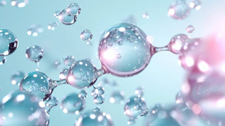 Cosmetics background, pastel Molecules, science background, lab background, herbal leaves, beauty products, bubbles background,Abstract Chemistry generative ai illustration