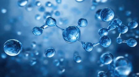 Captivating close-up image of molecular structures showcases the beauty of science, featuring vibrant blue tones and intricate details, ideal for educational or research use.