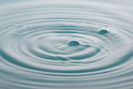 Water droplets creating ripples on a smooth, blue surface, evoking peace and calm.