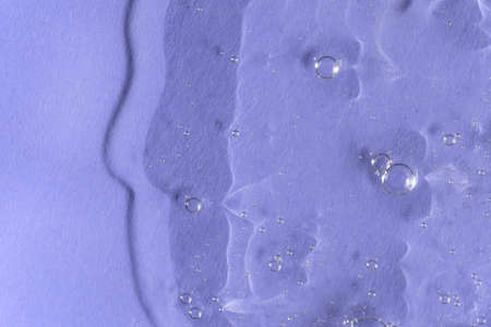 Textured backdrop with air bubbles. Gel, serum or hyaluronic acid on violet blue background. Cosmetics, beauty products presentation concept. Color of the year 2022.