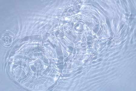 Circles on water. Blue round shadows. Blurred background made with water and light in monochrome. Pureness and freshness concept.