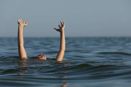 Hands of drowning man drowning in the sea. Concept of drowning.
