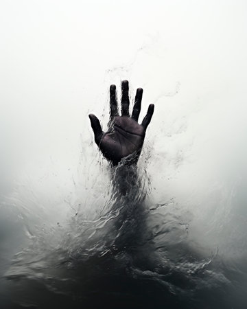 An AI generated illustration of a silhouette of a hand emerging from the depths of the water