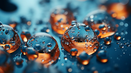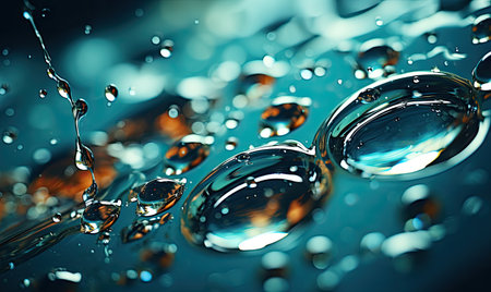 AI Generated. Water Droplets on Teal and Amber Surface A Close up View