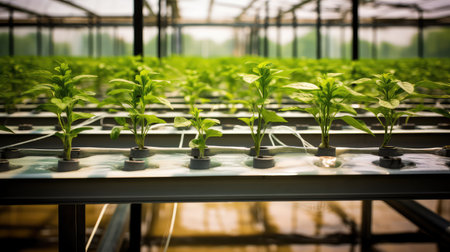 hydroponics with water pipe tube media environmental plant profesional photography ai generated