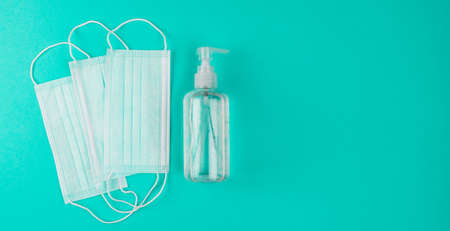 Coronavirus prevention and hand sanitizer gel medical surgical masks for hand hygiene corona virus protection.Germ prevention concept