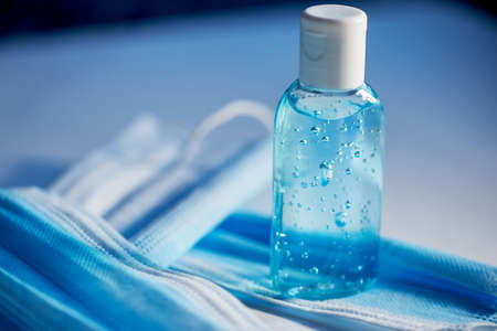 Coronavirus prevention and hand sanitizer gel medical surgical masks for hand hygiene corona virus protection.Germ prevention concept