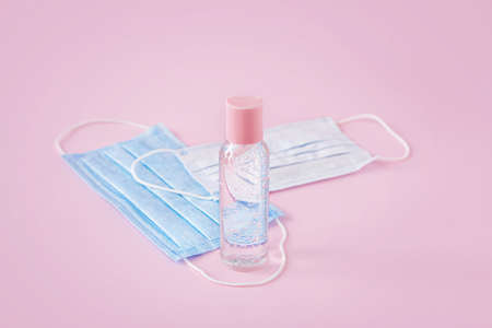 Health mask and alcohol, hand sanitizer for corona virus prevention 2019.