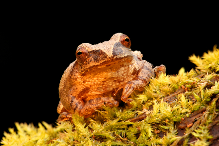 Spring Peeper (Pseudacris crucifer) on a log with a black background