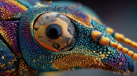 Explore this vibrant macro image of a detailed beetle showcasing vivid colors and intricate patterns, perfect for educational and artistic purposes in nature photography.