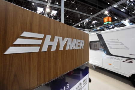 DUESSELDORF - AUGUST 27: Emblem of Hymer recreational vehicles at the Caravan Salon Exhibition 2012 on August 27, 2012 in Düsseldorf, Germany